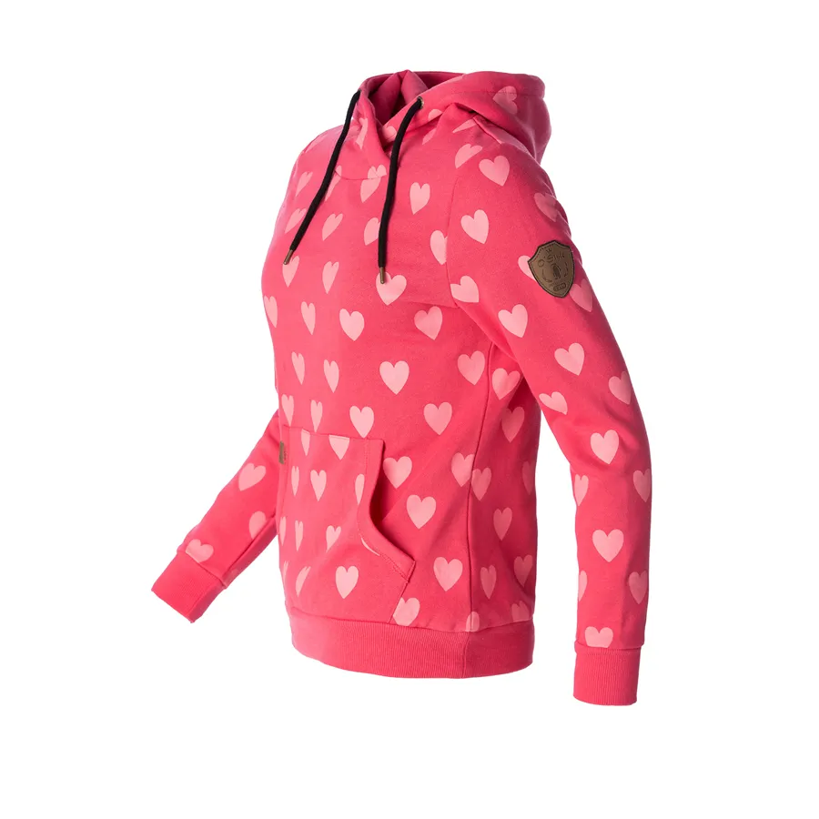 Dámská mikina s kapucí k volnočasovému nošení, z pleteniny a s jemným počesem z vnitřní strany.